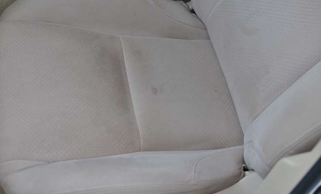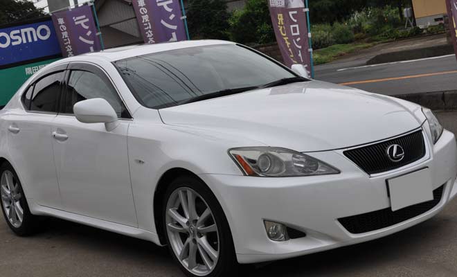 ご依頼頂いたお車レクサス・ISアイボリー色は明るく車内が広く見えますが汚れも目立ちますね( ゚Д゚)
